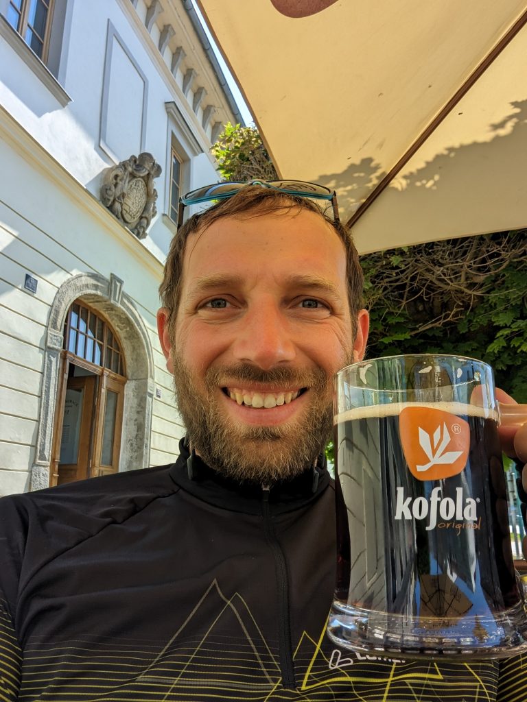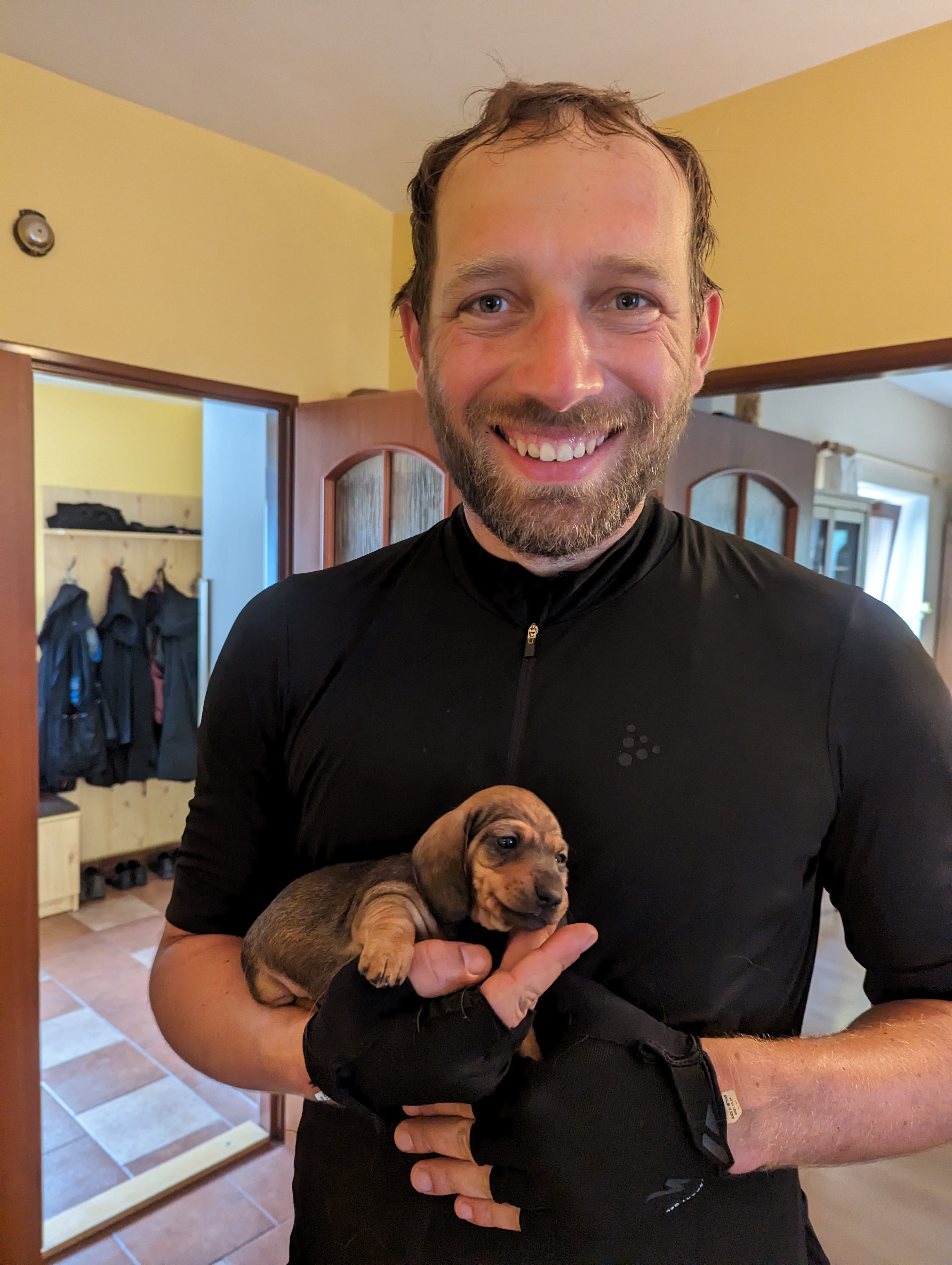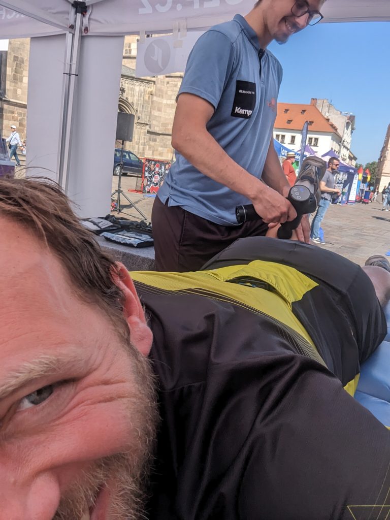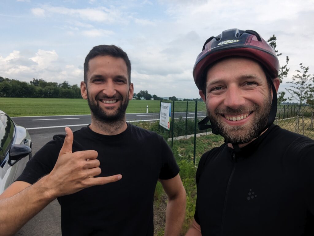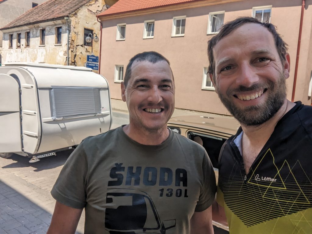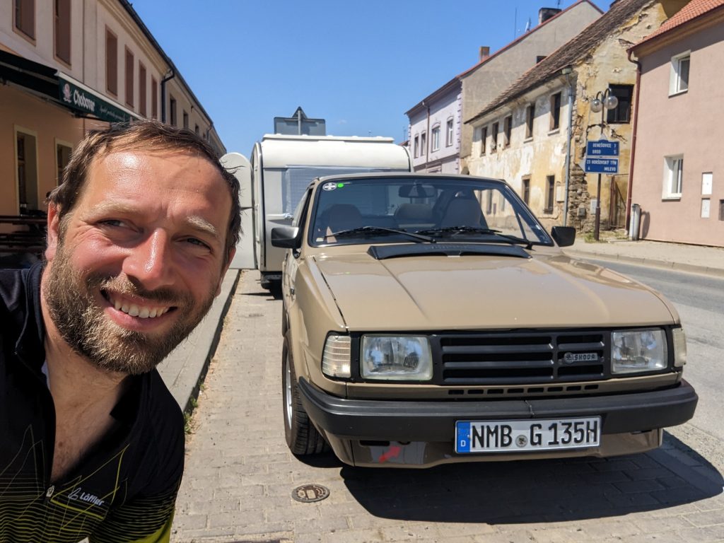 Shortly after the break, I have met my stalker and friend Ondra. He was chasing me with the car. I made it challenging for him by frequently changing directions, but eventually, he caught up with me. We had a good conversation, and to my surprise, he even brought along some snacks.
