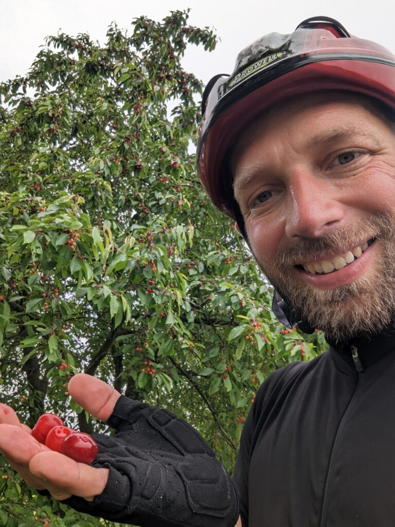 The last 30 kilometers of my ride were relatively easy, with the road lined with abundant cherry trees. I couldn’t resist stopping every 10 minutes to indulge in the juicy cherries, savoring their sweet taste and replenishing my energy. Finally, I conquered the steep hill above Sušice, bringing a profound sense of relief and accomplishment.